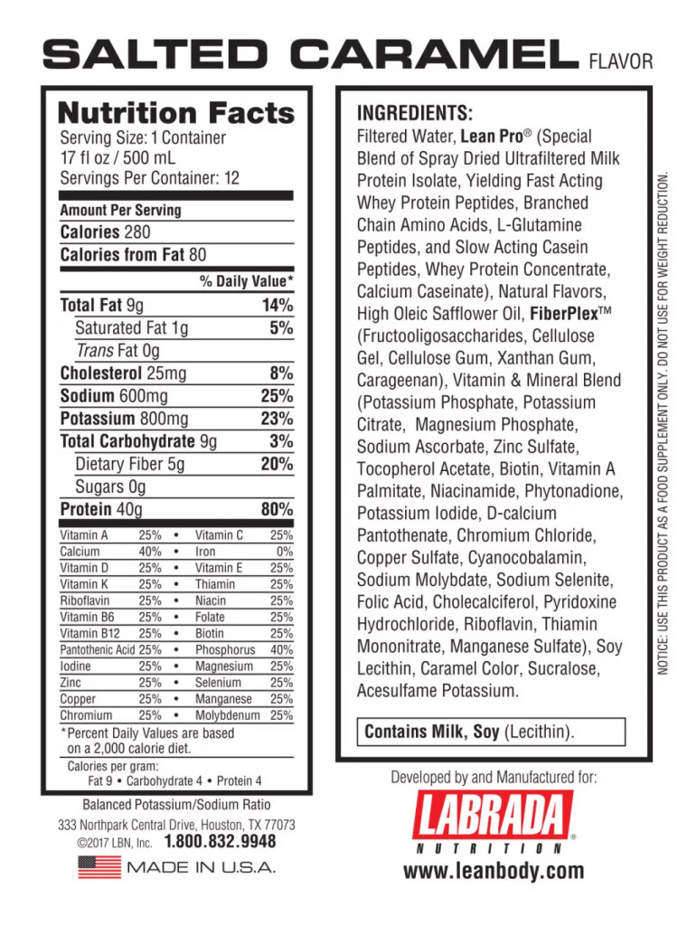 Labrada Lean Body RTD Protein Shake 250ml Salted Caramel (Sós Karamell)