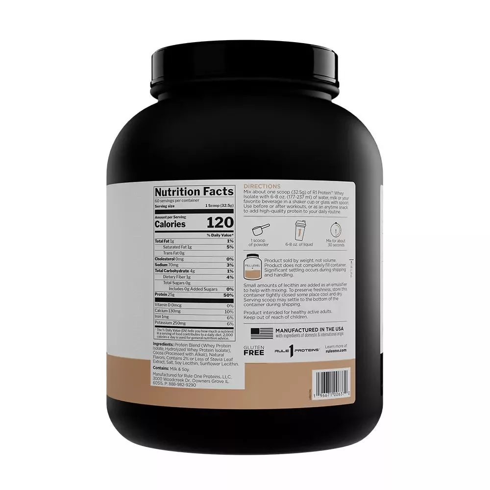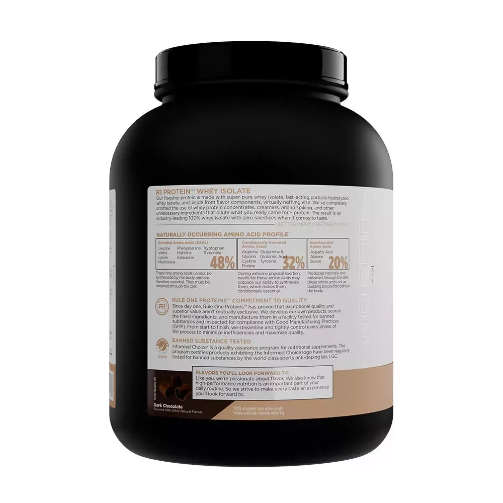 Rule1 Naturally Flavored R1 Protein Whey Isolate 4LBS 1810g Dark Chocolate (Csokoládé)